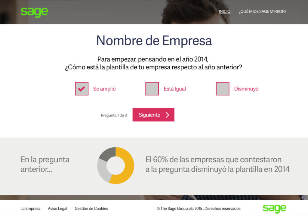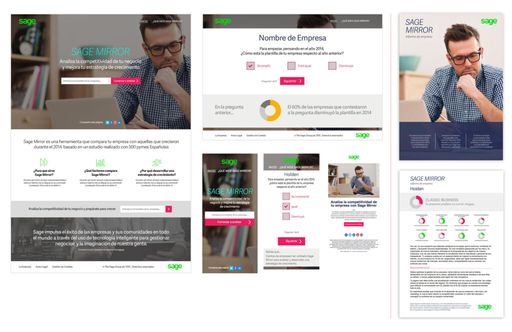 Sage Mirror is a self-diagnosis tool in which we develop the entire process integrated into the potential client qualification cycle. The idea, content, design and usability of the tool that gave you a rating of the company based on certain parameters.